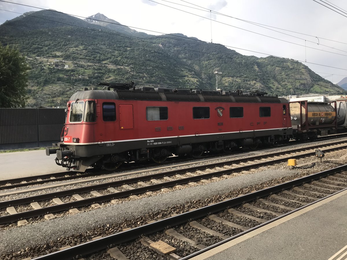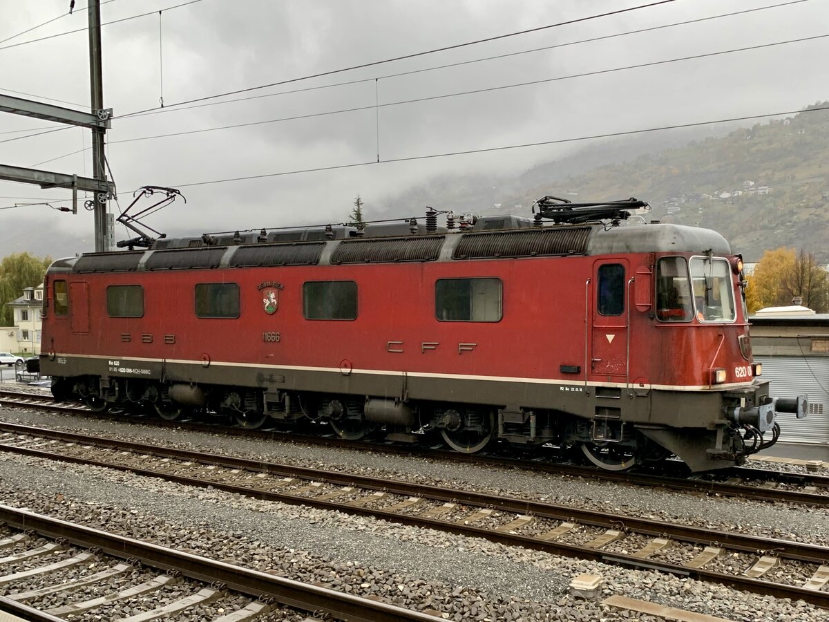 Die Re 620 032 "Däniken" am 8.8.23 beim Bahnhof Brig.