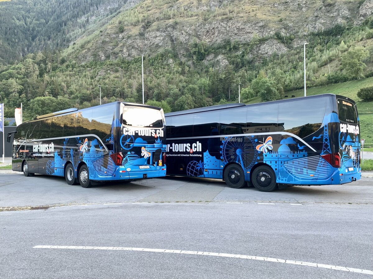 Heckansicht der beiden Setra 516 HD Nr. 14 und 15 am 2.10.23 in Eyholz.