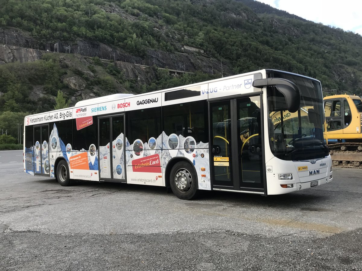 MAN Lions City Ortsbus Brig-Glis der die Seitenwerbung verloren hat am 5.11.19 in Brig.